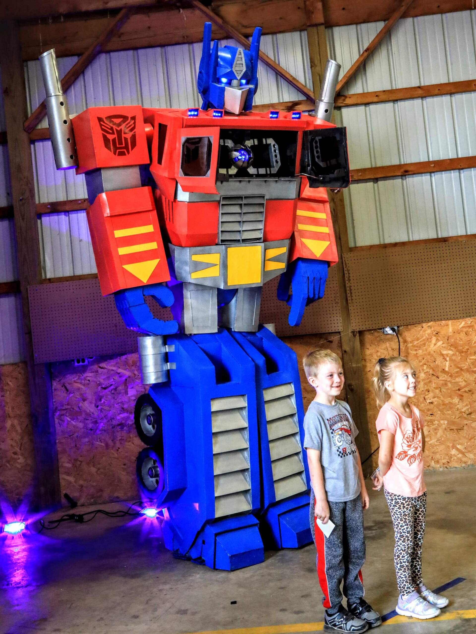 Towering almost 11-feet tall, their G1-inspired Optimus Prime cosplay features: