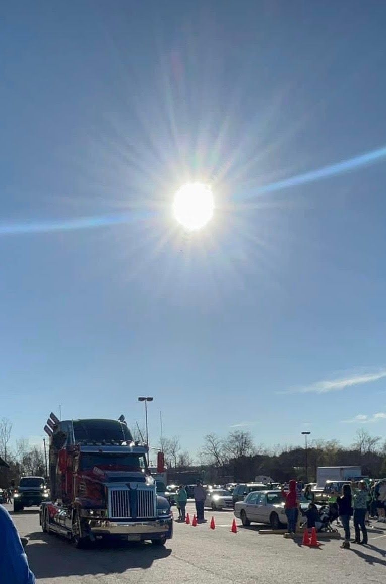 Levi's mom Whitney and his older sister were in Optimus Prime. Some of the other family members were in Ironhide and Bumblebee. As the team entered the parking lot, the entire crowd gathered at the center, surrounding the three vehicles.