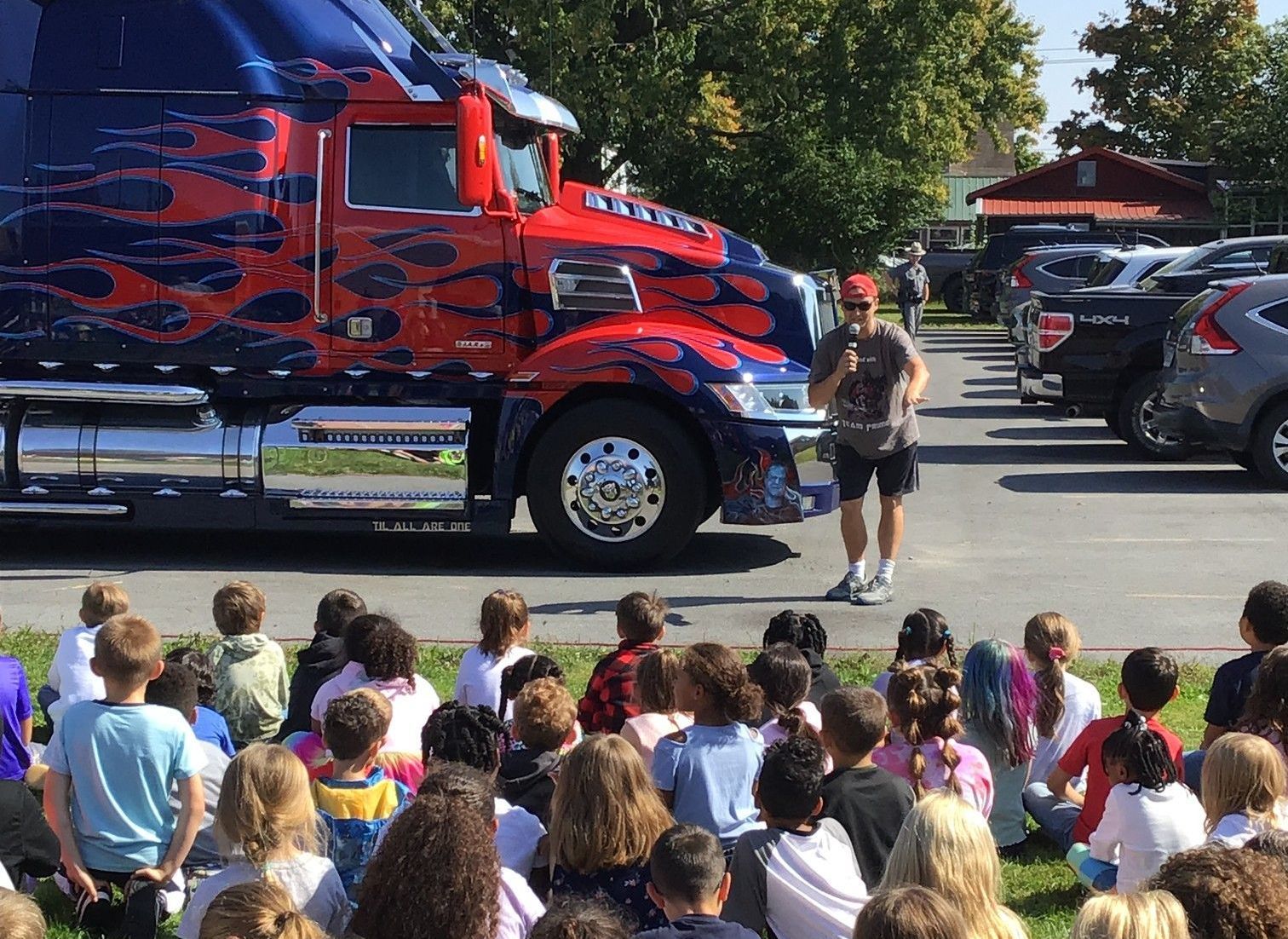 Fiduccia stopped at all five elementary schools across two days. He delivered his 45-minute presentation to the students outside on school grounds. During this time, he shares some of his experiences with bullies, how it led to building Optimus, while also offering suggestions on what to do when confronted by a bully. Though Optimus does not transform, Prime speaks to the kids as well through an amplified audio system mounted to the truck.