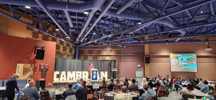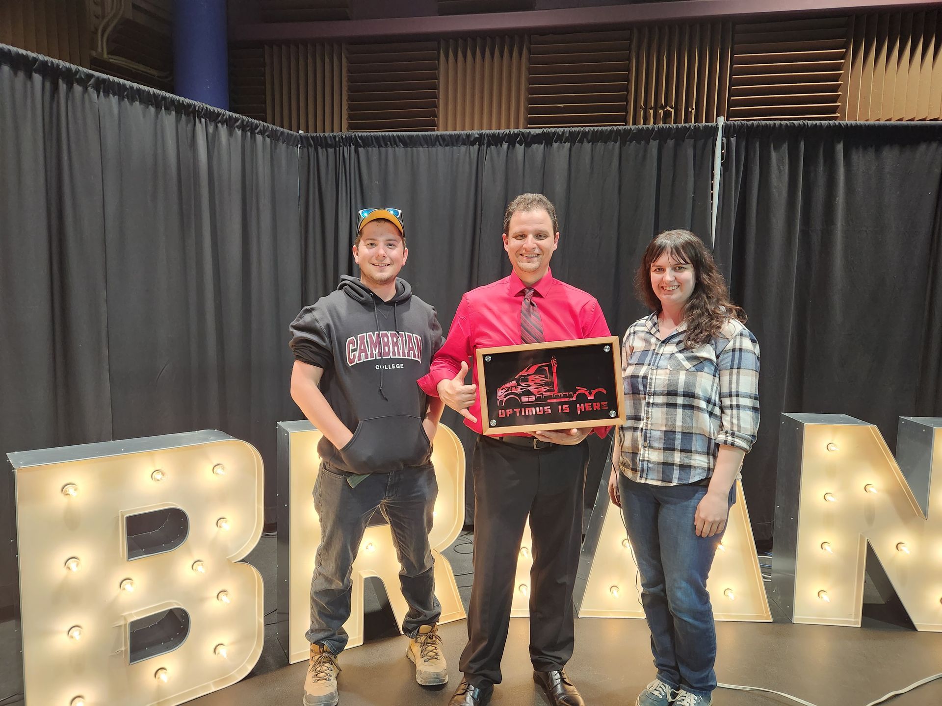 Fiduccia stopped first at Cambrian College with Optimus Prime late in April 2023, serving as a Keynote Speaker at their Student Innovation Challenge. He spent about 25 minutes sharing his journey with Optimus to the students. Enlightening them on the hardships an entrepreneurial path will create, the struggles and changes that can follow, while also encouraging them to use their passion to break through those barriers.